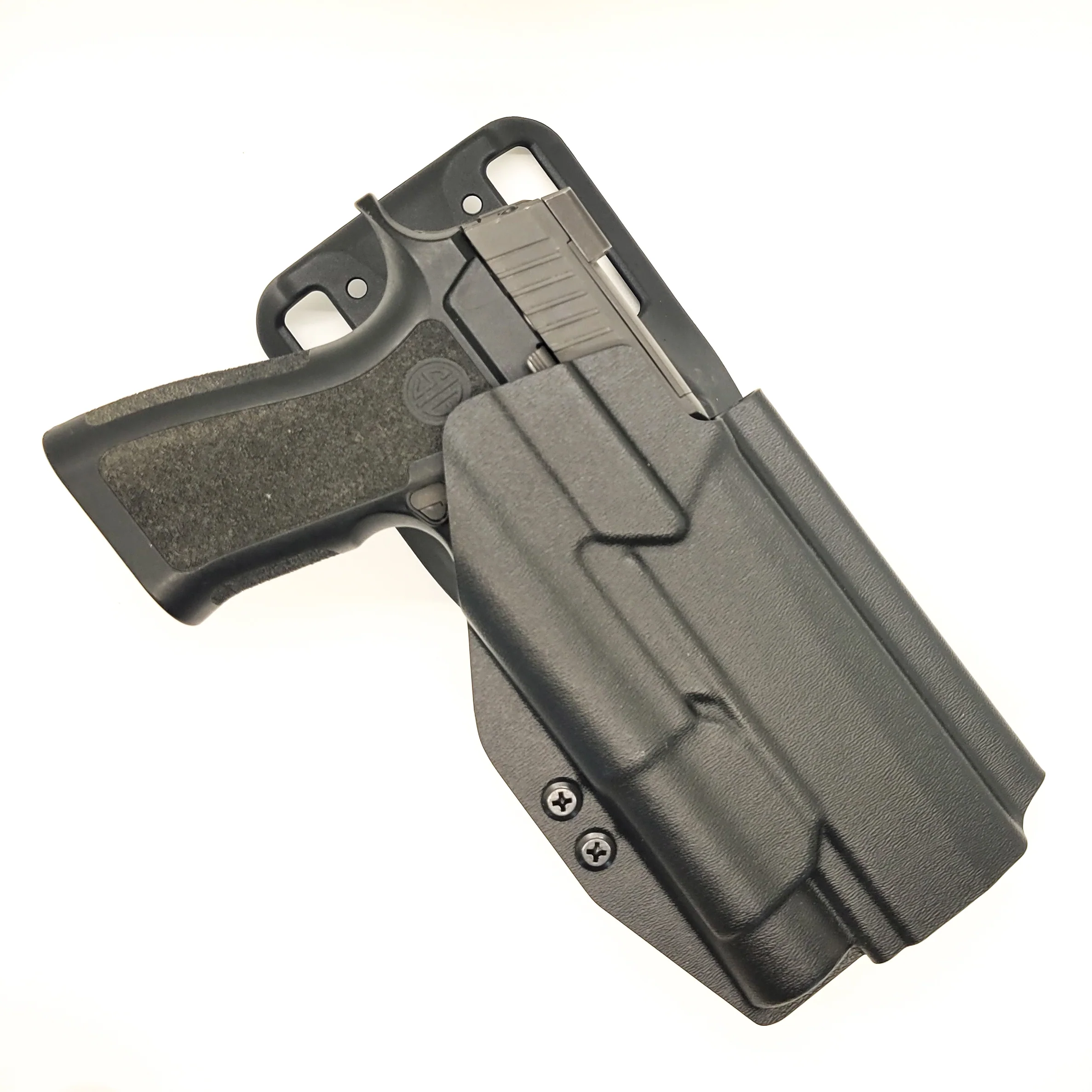 Each holster is formed, trimmed, and folded in-house. Final fit and function tests are done with the actual pistol and light to ensure the holster fits the gun/light combination and has the correct amount of retention.